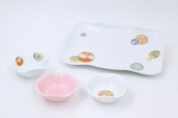 丸紋に丹念に描かれた吉祥文様が上品さと可愛らしさを醸し出し、お料理を華やかに引き立ててくれます。