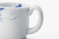 ぶどうの意匠は、古今東西を問わず吉祥紋様です。「用の美」 を追求した現代的な形姿に、100年前の下絵技法 「エアログラフ」によるブルーのグラデーションが真白な肌に染め込まれ、現代のブルー&ホワイトとして再現されています。白の間に、調子を取る様に伸びる 「つる」を手描きで入れているのも、一つ一つの表情の違いが器に温かで気韻ある印象を与える為です。熟練した職人の手技による現代のブルー&ホワイトには、明治期以来頑なに変わる事なく伝承してきた工芸品としての魅力が備わっています。