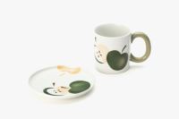ふわりと春風をまとったような淡いグリーンは落ち着いた印象を与え、日常の食卓に自然に馴染みます。リンゴの果実の部分を見せることで、温もりが感じられる作品です。色々なリンゴの表情を楽しみながら、珈琲タイムをお過ごしいただけます。