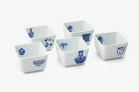 ブルーチャイナは、明治期に実際に制作されていた焼き物の意匠を小紋柄として描いたコレクションです。すべてブルーで描かれたこれらの陶磁器意匠は、伝統的な深川様式でありながら実に可愛くデザインされております。