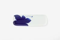 フカガワブルーで大胆にモミジを描いています。 窯の炎により変化する瑠璃の絶妙な色合いと、対比となる余白が美しい作品です。