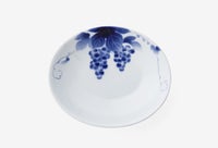ブルーワイナリーは発売以来、多くの方に愛されてきた深川製磁の代表的なベーシックライン。豊かな実りを表すぶどうを100年の伝統を持つ染付技法で表現しています。「身近な工芸」、「用の美」を目指したブルー&ホワイト。普段の料理はもちろん、おもてなしの料理でも品よく、そしてやさしさを感じるうつわ。ユニークで温かみのある形状と余白に美を感じる染付のぶどう柄は、毎日の食卓をやさしく彩ります。