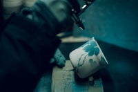 深川製磁の工房では、粘土を精製するところから磁器づくりが始まります。原料として深川製磁が使用しているのは、熊本県天草地方で採れる上質な陶石。ハンマーやミルを使ってこれを微細に砕き、水分を抜きながら練り上げて、粘土をつくります。出来上がった粘土は、「ろくろ」または石膏の「型」を使って成型。深川製磁では、その石膏型、さらには石膏型をつくるためのもととなる原型から、職人の手によってつくられています。成型したあとは、余分な箇所を削りながら、さらに細かく形を調整。この工程では「1mmの4分の1」の微細なレベルまで感覚的に判断できる熟練した職人の手により、絶妙な角度やカーブに至るまで魂の込もった、美しい造形がつくり上げられます。
