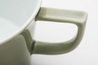 やきものの最高峰、中国・宋の時代の青磁のように深みのある青緑色。深川製磁が年に一度、谷窯と呼ばれる自社の登り窯で焼き上げる青磁の色を再現したいという思いから誕生しました。