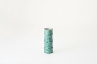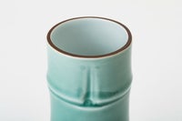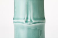 スマートでシンプルな青磁の花生には、熟練の職人が丁寧に彫刻を施しており、「竹青磁」と呼ぶこの青磁は、天然の「栗皮灰」を混入して自家精製したもので、細かい気泡が内部に見え、深く透明なヒスイ色が魅力です。 場所を選ばす美しく活けられ、存在感を放ちます。