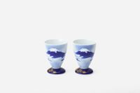 染付で富士山を描き、金彩で金ミル文様を施したペアゴブレットです。磁器ならではの滑らかな質感と優しい口当たりが特徴です。 お気に入りの絵付けが施された陶磁器で楽しむお酒の「色」、「香り」、「味」には他には無い特別な魅力があります。まさに自分の「嗜好」が、より強く確かめられるのが陶磁器の酒器と云えます。