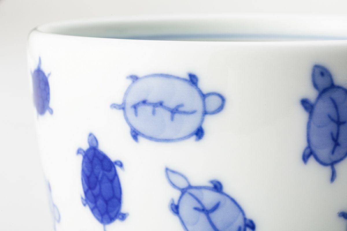 染付亀 削り型蕎麦猪口