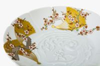 お皿の中央には鳳凰の陽刻=浮き彫りが優美に舞う姿を白磁で立体的に表現されており、お料理を美しく引き立てます。