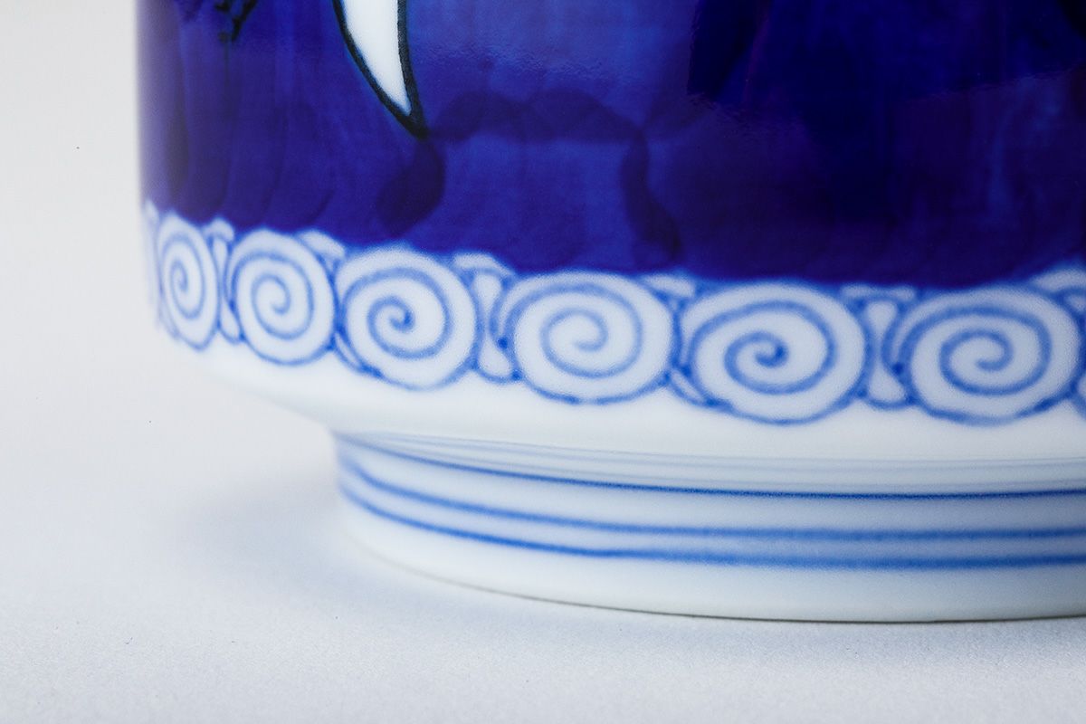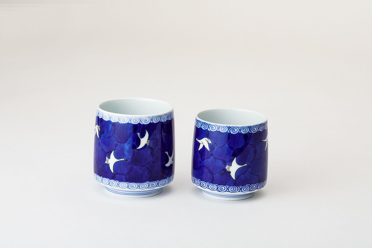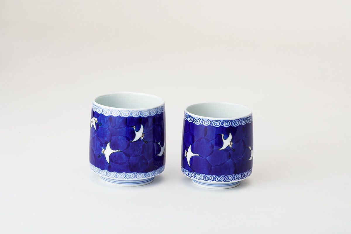 お茶の器は、口当たりと手に馴染む程よい形が重要です。 丁寧に施された濃(だ)みに動物モチーフ長寿の吉祥文様「鶴」が映える湯呑です。