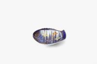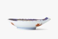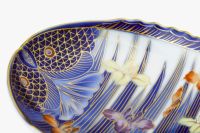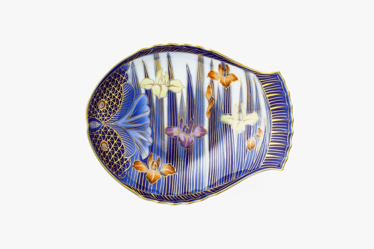 古伊万里によく見られる魚皿。大胆な構図を持ち、男性的な模様が多いのが特徴です。この作品はあやめが繊細で丁寧に描かれており、ヨーロッパに影響を与えたジャポニズムの匂いを漂わせた、まさに明治モダニズムと云えます。