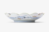 菊割の輪花鉢は、柿右衛門様式として広く知られています。19世紀末新しい有田の意匠として1900年パリ万国博覧会に出展した深川忠次は、彼のオリジナルデザインをパッチワークのようにこの輪花鉢の花弁に施しました。