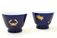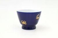 美しい瑠璃色に金彩でニーモアに蟹を描いております。