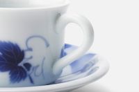 ぶどうの意匠は、古今東西を問わず吉祥紋様です。「用の美」 を追求した現代的な形姿に、100年前の下絵技法 「エアログラフ」によるブルーのグラデーションが真白な肌に染め込まれ、現代のブルー&ホワイトとして再現されています。白の間に、調子を取る様に伸びる 「つる」を手描きで入れているのも、一つ一つの表情の違いが器に温かで気韻ある印象を与える為です。熟練した職人の手技による現代のブルー&ホワイトには、明治期以来頑なに変わる事なく伝承してきた工芸品としての魅力が備わっています。