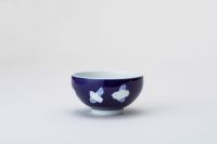 深い瑠璃色に雀の意匠がかわいい工芸的なご飯茶碗。すこしぽってりとした大きめサイズです。