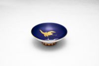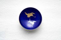 令和6年のお題「和」因み、仲良きことで知られる鶴をモチーフに友人や親子、夫婦が「相和す」ように、七宝のひとつである瑠璃色に金と銀の上絵で施しました。