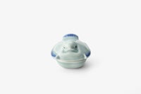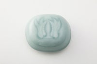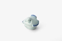 柔らかい青磁の色とふくら雀の可愛らしいさが際立つ香合です。 後ろ側には雀の可愛らしい足がなんともユニークです。 場所を選ばすに飾っていただけます。