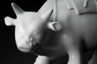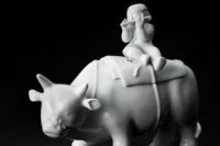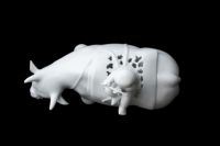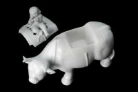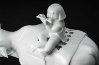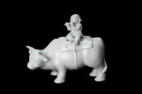 美しい陶白磁で表現された牛の背に、笛を吹く子供の姿が愛らしい作品です。 柔らかな曲線と繊細な造形は心安らぐ牧歌的な情景を映し出します。