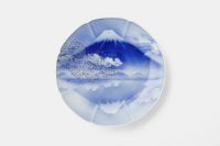 明治期以降富士山をモチーフに多くの意匠を制作してきた深川製磁。エアログラフ(吹き付け)によるグラデーションは、官窯染付の良さを余すところなく表し、深川独自の「気韻」を醸しだしています。
