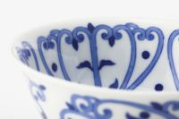 染付の濃淡で菊と唐草の紋様を表現しており、鮮やかな青色と和洋問わず楽しめるモダンな美しさが光る商品です。