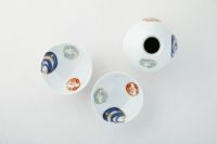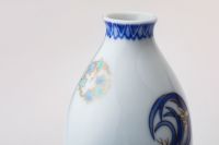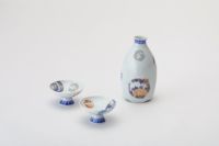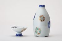 古くより日本では、四季の草花を丸い文様としてデザインし、着物や工芸品の意匠として用いられてきました。 水仙・牡丹・南天など、丸い文様として空間に配することによって、日本の四季、自然の風情を楽しむ意匠としております。 有田独自の染錦手技法により、染付のブルーと上品な赤絵、金彩のコンビネーションで彩られた花丸紋は、落ち着きと気品を感じさせます。 形姿は日本酒をもっとも美味しくいただくためのもの、特に盃は、お神酒をいただく祭器のように薄く平たい神聖な形状です。 美味しい和食、日本酒と共に、日本の伝統、日本人の心をお楽しみください。