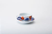 染錦春秋紋 反平大紅茶碗皿