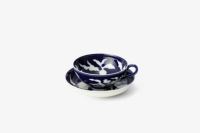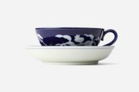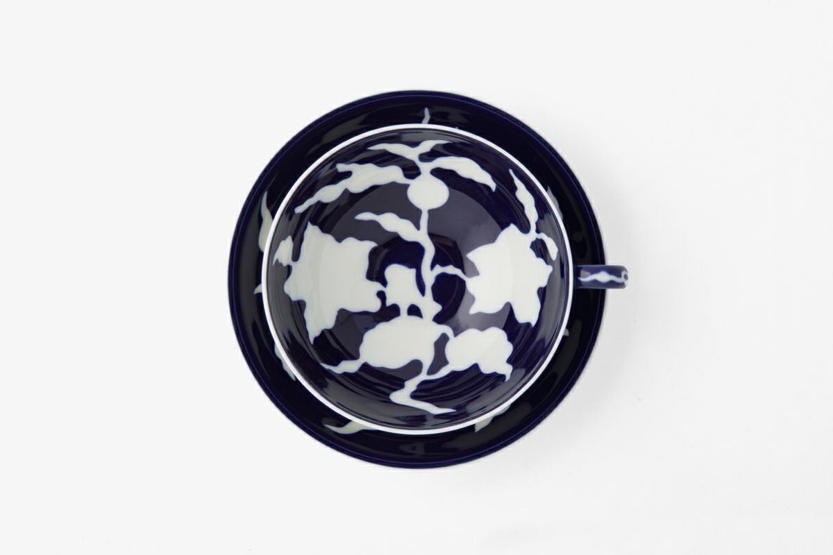 明時代の「瑠璃地草花折枝白抜文皿」を意識したデザインを現代に復刻。現代の暮らしにも馴染むモダンな意匠が大変人気です。