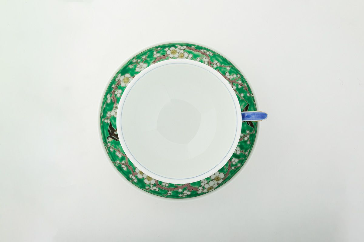 梅小鳥外濃(緑) 紅茶碗皿