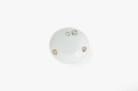 内側に描かれているひめ丸紋は、明治時代から続く、花をリースの様に丸紋にした格調ある意匠です。形姿は温かみのある柔らかな手触りで強度も兼ね備えており、お子様から大人の方まで人気の取り皿です。
