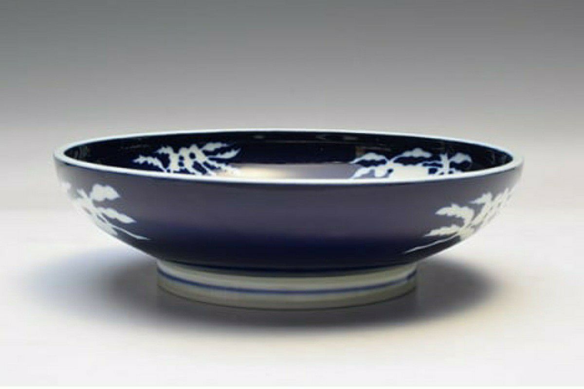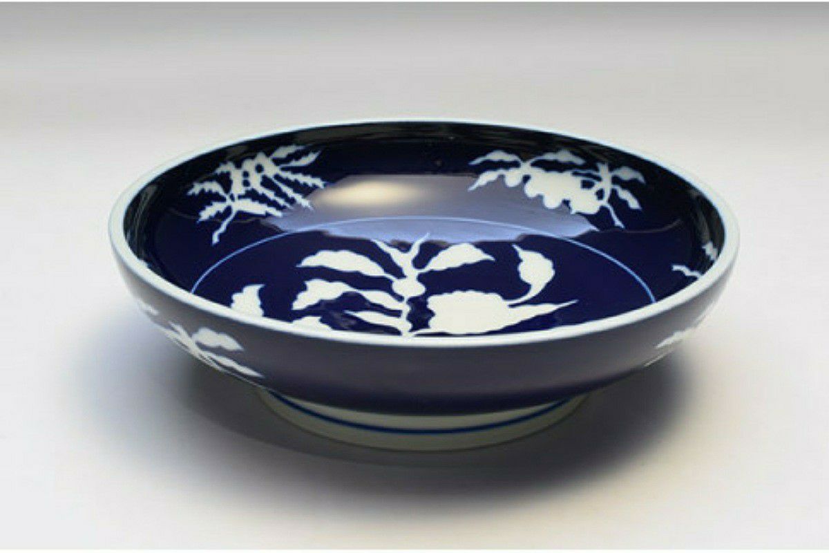 深川製磁の代名詞とも云える瑠璃色のうつわです。他にはない深みのある瑠璃地に、白抜きで花と葉をつけたざくろの折枝を表現致しました。お持ちの様々な色合いのうつわとも相性が良く、日常使いに活躍してくれるうつわになっています。