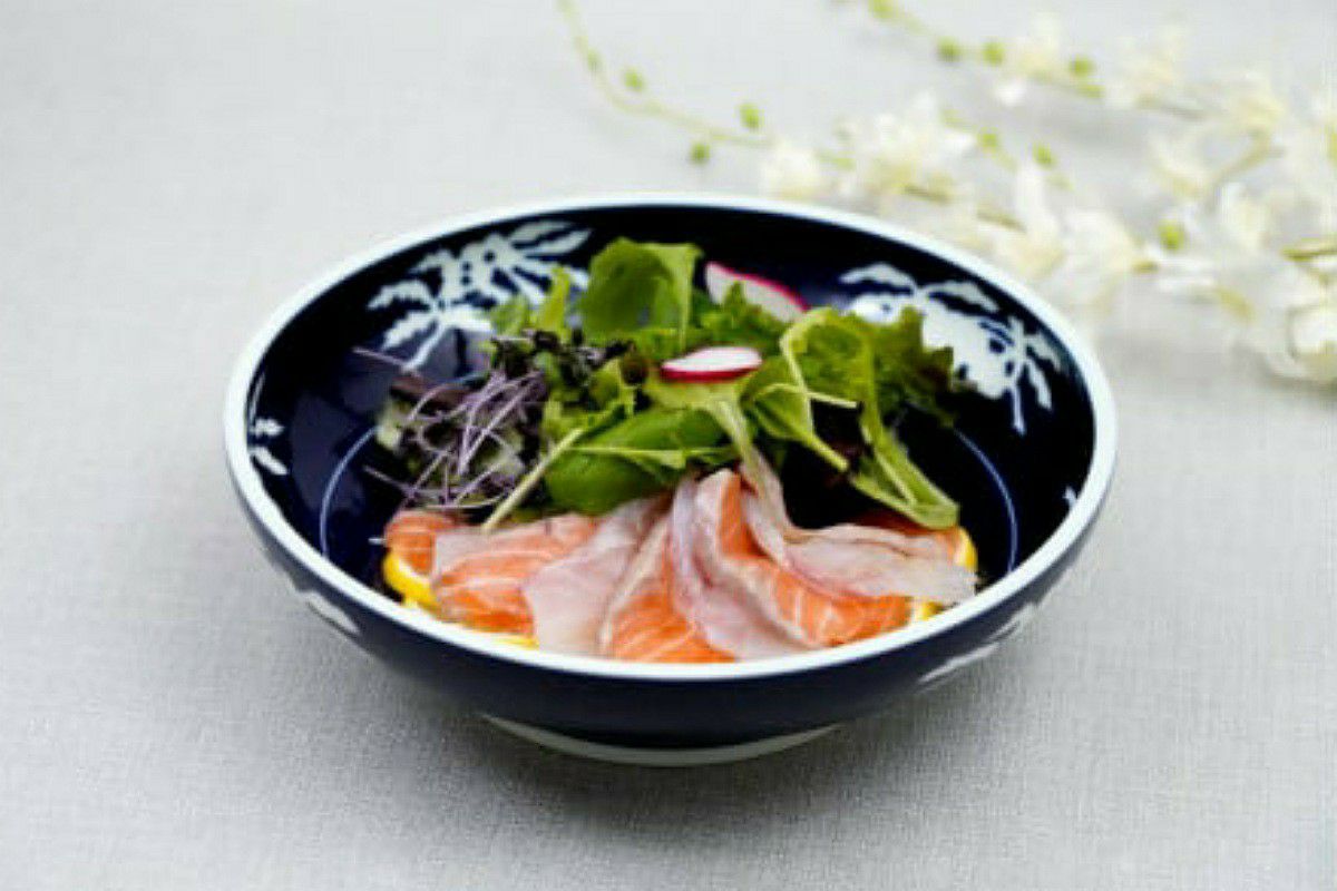 盛鉢には美しい瑠璃釉と柘榴の白抜き模様の「美」と、使いやすい大きめサイズによる「機能美」が見事に融合した作品です。シリーズで揃えていただくことで、テーブル全体に統一感と気品が生まれます。