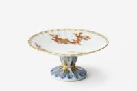 花の中にうずくまる兎をモチーフに上絵で仕上げた鍋島花兎シリーズのコンポート。