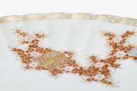 有田焼として江戸期、最高の藩用仕上げを誇った色鍋島。 この「花兎図柄」は、鍋島直映公から初代深川忠次に寄与された明治期最高の深川様式の一つに数えられています。木灰釉によるやわらかな磁肌は、繊細な絵付とともに明治調の気品を醸しだしている作品と云えます。