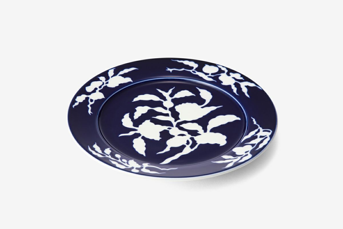 本作品は、中国・明王朝の黄金期に制作された作品を深川製磁が現代技術で復刻・再構成しました。この時代の磁器は、白磁に藍で描かれた繊細な絵付を「宣徳青花」で知られ、とくに、草花折枝白抜紋は優雅で自然な構図が特徴の伝統文様として重宝されました。柘榴の花や枝を一枝ごと丁寧にあしらったそのデザインは、静謐な美をたたえ、文人趣味や自然観と深く結びついています。