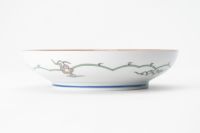 これまで「栗」「枇杷」「いちじく」などの 果物絵は、忠次作品に見られますが、江戸末期に伝来したと言われている苺が、桜、菖蒲、蝶、蜻蛉な どと賑やかに配されているデザインは、少し西洋食器の様な趣があり面白いものがあります。