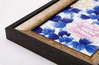 1900年パリ万国博覧会で名誉金牌を受賞後、初代 深川忠次は英国バーミンガムの貿易商「ワット商会」と代理店契約を結び広く欧州へ知られる事となります。これが「深川ポースレン」の始まりです。本意匠は、当時の製陶思想そのままに、現代の職人が丹念にリメイク、完成させたものです。中国では花の王とされる牡丹は、日本にも伝わり吉祥文様として好まれています。西洋では牡丹図はpeonyと呼ばれ、東洋の魅力的な花として人気を博しています。花の輪郭と葉を染付手法で描き、さらに、花びらには黄色とピンクの赤絵付けを施して牡丹の美しさを見事に表現しています。