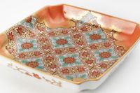 古伊万里nouveau 金襴手更紗珊瑚色 飾皿