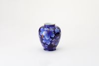 本作品は、当時より好んで描いたブドー絵を、深川独自の吹き掛け手法で染付けたものです。蔓を延ばして成長するブドーの生命力を表現し、豊穣、繁栄の吉祥文様として現代も愛され続けております。