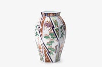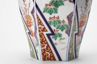 欧米では現在でも、東洋趣味を取りいれたインテリアはご婦人方の憧れのようで、日本の工藝磁器は垂涎の的となっています。意匠は、唐草文様と桐鳳凰、松、牡丹など吉祥文様と組み合わせた「古伊万里様式」になっております。形姿は成形、焼成するに変形しやすい六角の面取型となっており、海外でも人気の「古伊万里スタイル」です。透けるような白磁、明るく深い染付の青色、艶やかな赤絵、金彩、どれもが上質な原料と熟練した職人の手技が生みだす「深川様式美」であります。