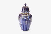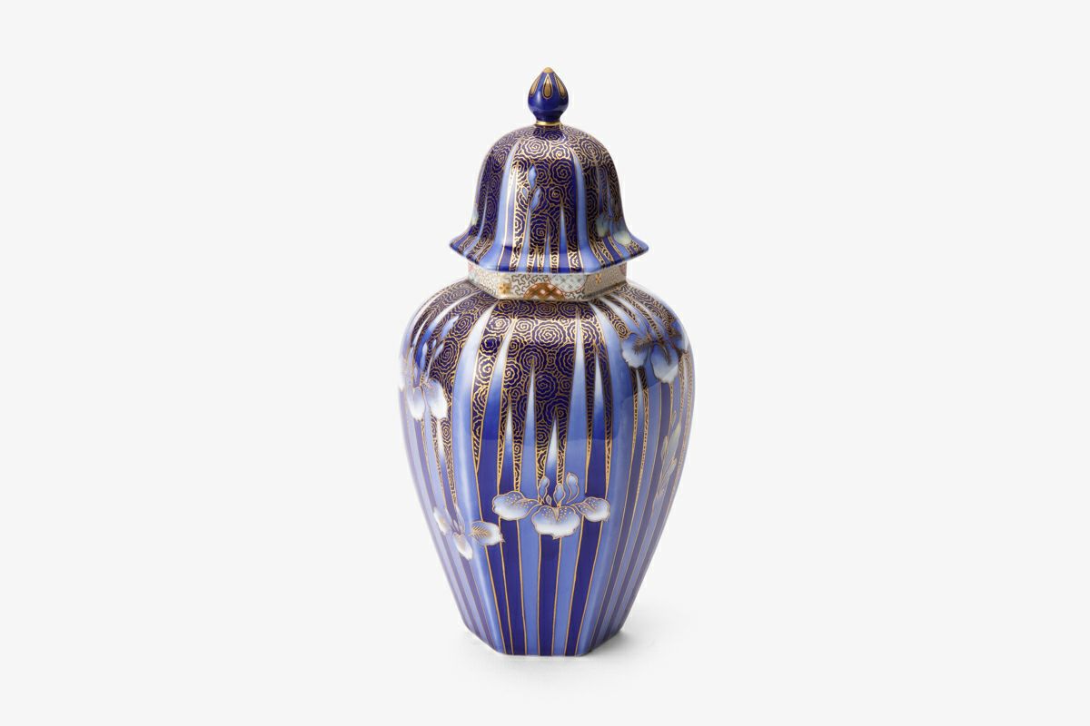 染錦金彩あやめ冠付六角7寸壺(壷)