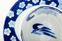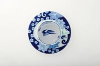 線描きは伝統工芸士馬場松華が手掛け、熟練の「だみ職人」が陰影と強弱をつけて染めていきます。 大胆な構図と精緻な筆致で描いた花鳥の世界は、1,350度の高温度還元焼成により、深川独自の染付となっております。