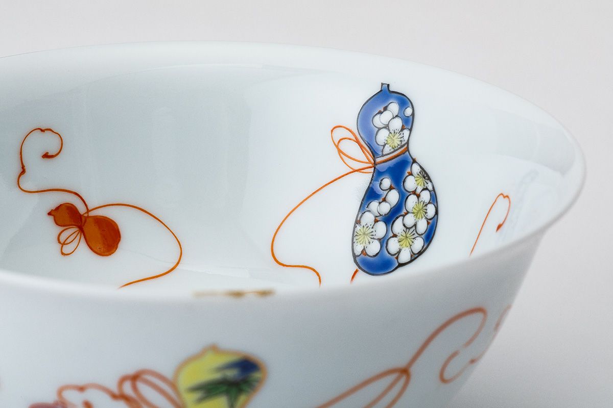 初代 深川忠次が明治期の意匠を現代に再現したコレクションです。繊細な筆つがいで描かれた花の柔らかな色彩表現をお楽しみください。