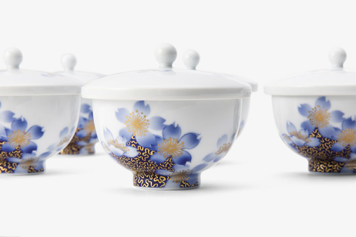 美しい真っ白な陶白磁に深川独自の吹き掛け手法による染付で丁寧に桜を描き、余白にあしらわれた金彩が気品を感じさせる汲出碗5個揃です。 独自の美感を持った意匠でいただく色合いや香りは、人の心を豊かにします。大切な記念日や結納時など、さくら茶でおもてなしなどおすすめ。碗の中にも桜の意匠が描かれているので、蓋を開けるたびに心を和ませてくれます。