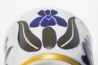 自然を愛する心をシンボリックに表現した尾形光琳の作風は「光琳模様」とも呼ばれ、現代日本の絵画、工芸、デザインに大きな影響を与えています。本品はその魅力的なデザイン感覚を以って草花の生命力を青・茶呉須の染付・金彩で描いた作品です。