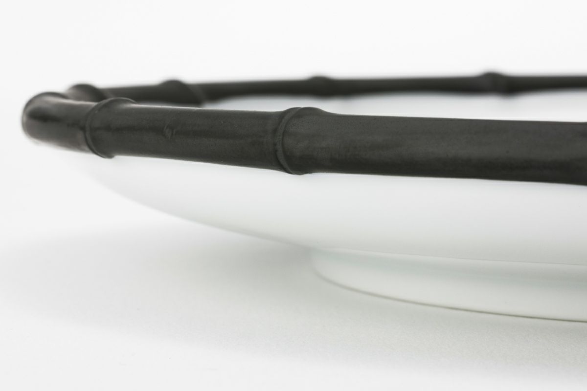 初代・深川忠次が愛した竹の意匠をもとに、現代に誕生したシリーズです。カップの持ち手やソーサーのふちを飾る「黒竹」が、白磁の肌に映え、上質で気品あるお茶の時間を演出します。
