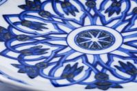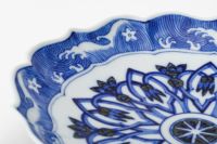 中国元代の皇帝は、イスラム寺院に使用されていたブルーモザイクに感動し、自ら顔料を持ち帰り磁器に描かせました。その後、明代の歴代皇帝は、この染付磁器の魅力を追い求め「染付磁器」は完成していきます。 明染付は熟練の絵付士である伝統工芸士 松華が、この最高峰の染付磁器に挑戦し、完成させた作品です。濃淡が織りなす深い青が、染付の魅力を最大限に引き出しています。