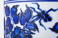 中国元代の皇帝は、イスラム寺院に使用されていたブルーモザイクに感動し、自ら顔料を持ち帰り磁器に描かせました。その後、明代の歴代皇帝は、この染付磁器の魅力を追い求め「染付磁器」は完成していきます。 明染付は熟練の絵付士である伝統工芸士 松華が、この最高峰の染付磁器に挑戦し、完成させた作品です。濃淡が織りなす深い青が、染付の魅力を最大限に引き出しています。