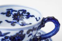 中国元代の皇帝は、イスラム寺院に使用されていたブルーモザイクに感動し、自ら顔料を持ち帰り磁器に描かせました。その後、明代の歴代皇帝は、この染付磁器の魅力を追い求め「染付磁器」は完成していきます。 明染付は熟練の絵付士である伝統工芸士 松華が、この最高峰の染付磁器に挑戦し、完成させた作品です。濃淡が織りなす深い青が、染付の魅力を最大限に引き出しています。