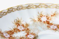 有田焼として江戸期、最高の藩用仕上げを誇った色鍋島。 この「花兎図柄」は、鍋島直映公から初代深川忠次に寄与された明治期最高の深川様式の一つに数えられています。木灰釉によるやわらかな磁肌は、繊細な絵付とともに明治調の気品を醸しだしている作品と云えます。