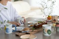 ふわりと春風をまとったような淡いグリーンは落ち着いた印象を与え、日常の食卓に自然に馴染みます。リンゴの果実の部分を見せることで、温もりが感じられる作品です。色々なリンゴの表情を楽しみながら、珈琲タイムをお過ごしいただけます。