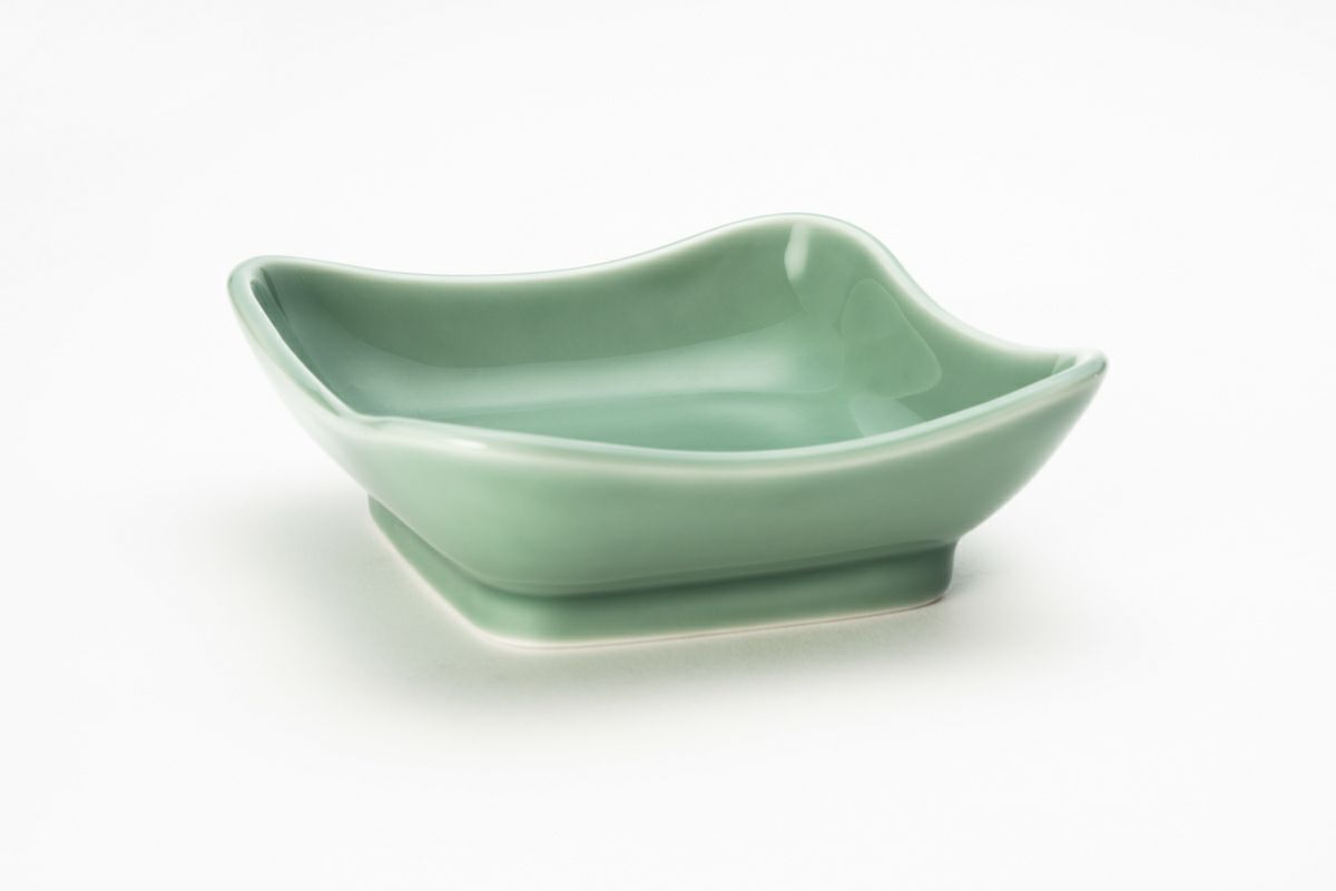 オツカレサマ、ワタシシリーズ 第二弾! ゆるり笹青磁 四方波取皿 径11.5㎝